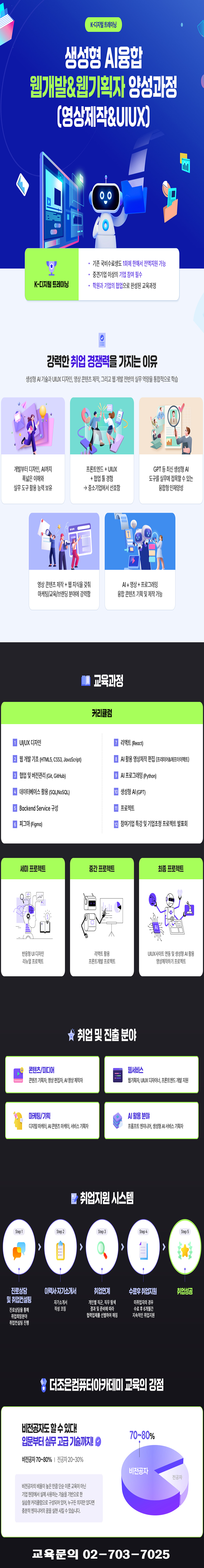 | 제목 | 생성형 AI융합(영상제작 & UI/UX) 웹개발 & 웹기획자 양성과정 | ||